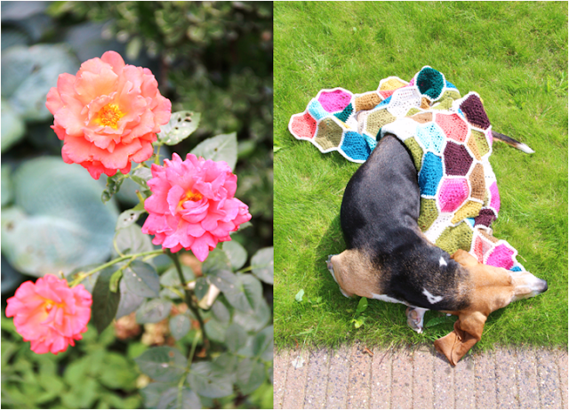 Oh my is that a basset hound snuggled up in your beautiful blanket. I don't know which one is luckier, I luuuuuuuv your blankie & i adore basset hounds, blissful scene :)